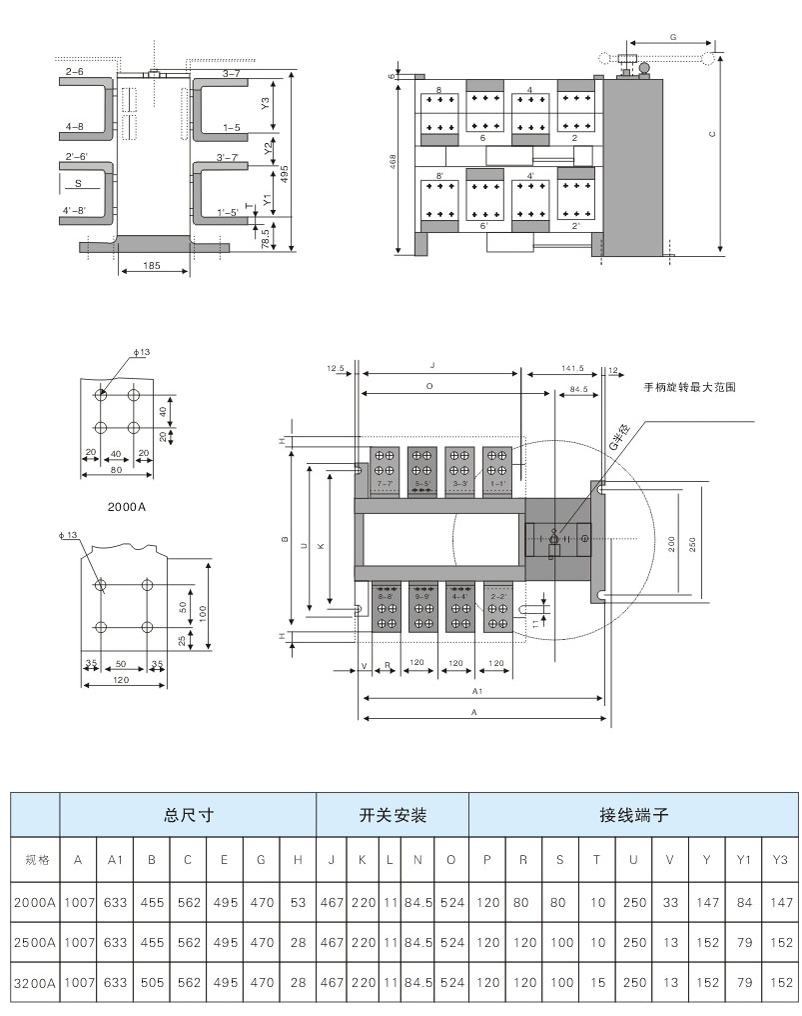The Dimension Drawing of Installation of HZQ5 Automatic Transfer Switch
