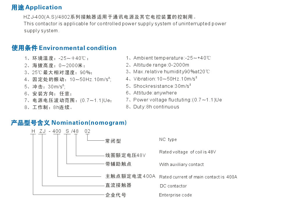 HZJ-400A/S-4802直流接觸器